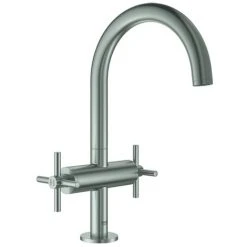 GROHE Atrio Waschtisch-Einlochbatterie, DN 15 L-Size Keramik-Oberteile 1/2”, 90 Grad GROHE StarLight Oberfläche GROHE EcoJoy 5,7 l/min Laminar Mousseur Schnell-Montage-System schwenkbarer Bogenauslauf mit Anschlagbegrenzung Push-open Ablaufgarnitur 1 1/