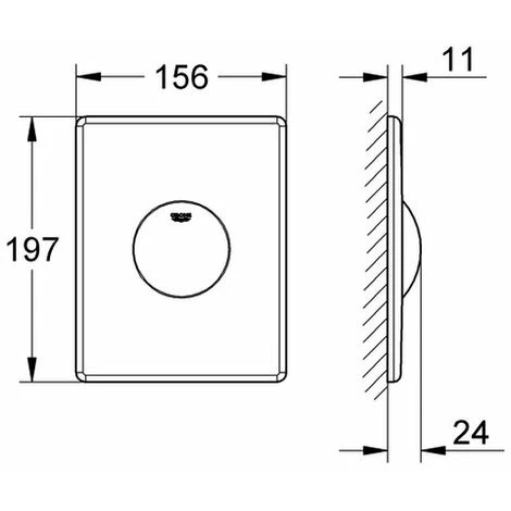 GROHE Skate Abdeckplatte für 1-Mengen-Betätigung für pneumatisches Ablaufventil senkrechte und waagerechte Montage 156 x 197 mm aus ABS alpinweiß