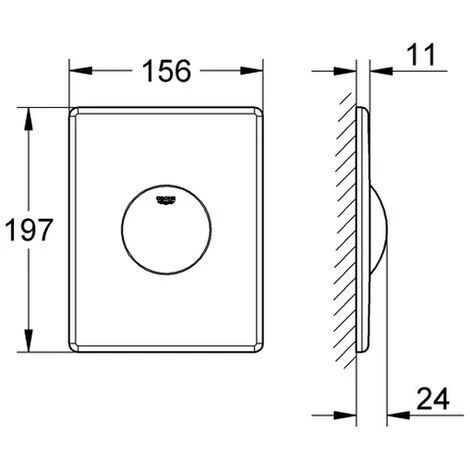 GROHE Skate Abdeckplatte für 1-Mengen-Betätigung für pneumatisches Ablaufventil senkrechte und waagerechte Montage 156 x 197 mm aus ABS GROHE StarLight Oberflächemattchrom