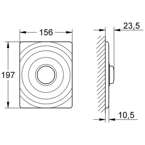 GROHE Surf Abdeckplatte senkrechte Montage 156 x 197 mm Messing Druckknopfbetätigung Halterahmen Befestigung verdeckt GROHE StarLight Oberfläche chrom